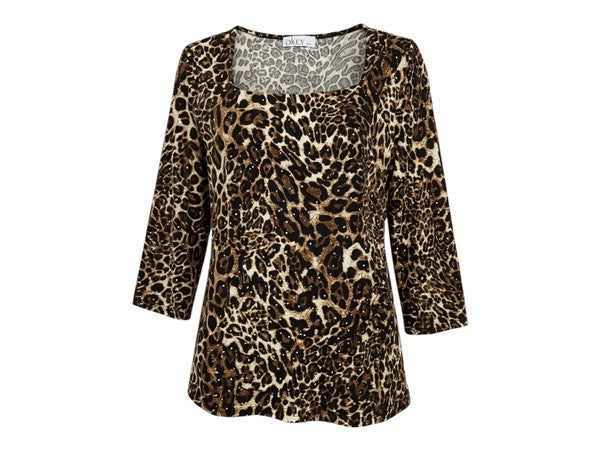 Blusa OKEY diseño animal print, manga 3/4 de escote cuadrado, moderna y elegante.