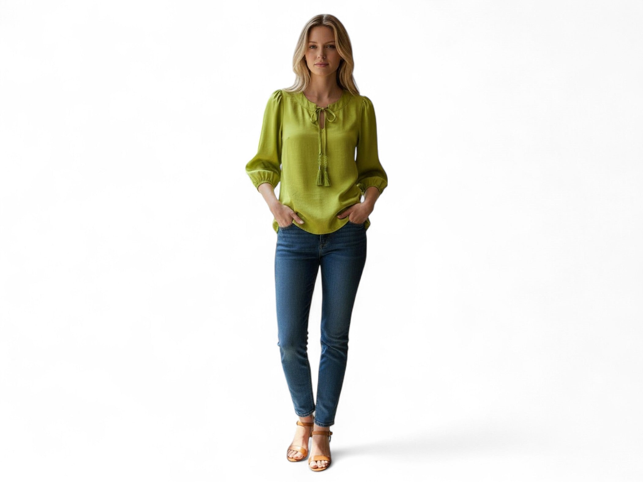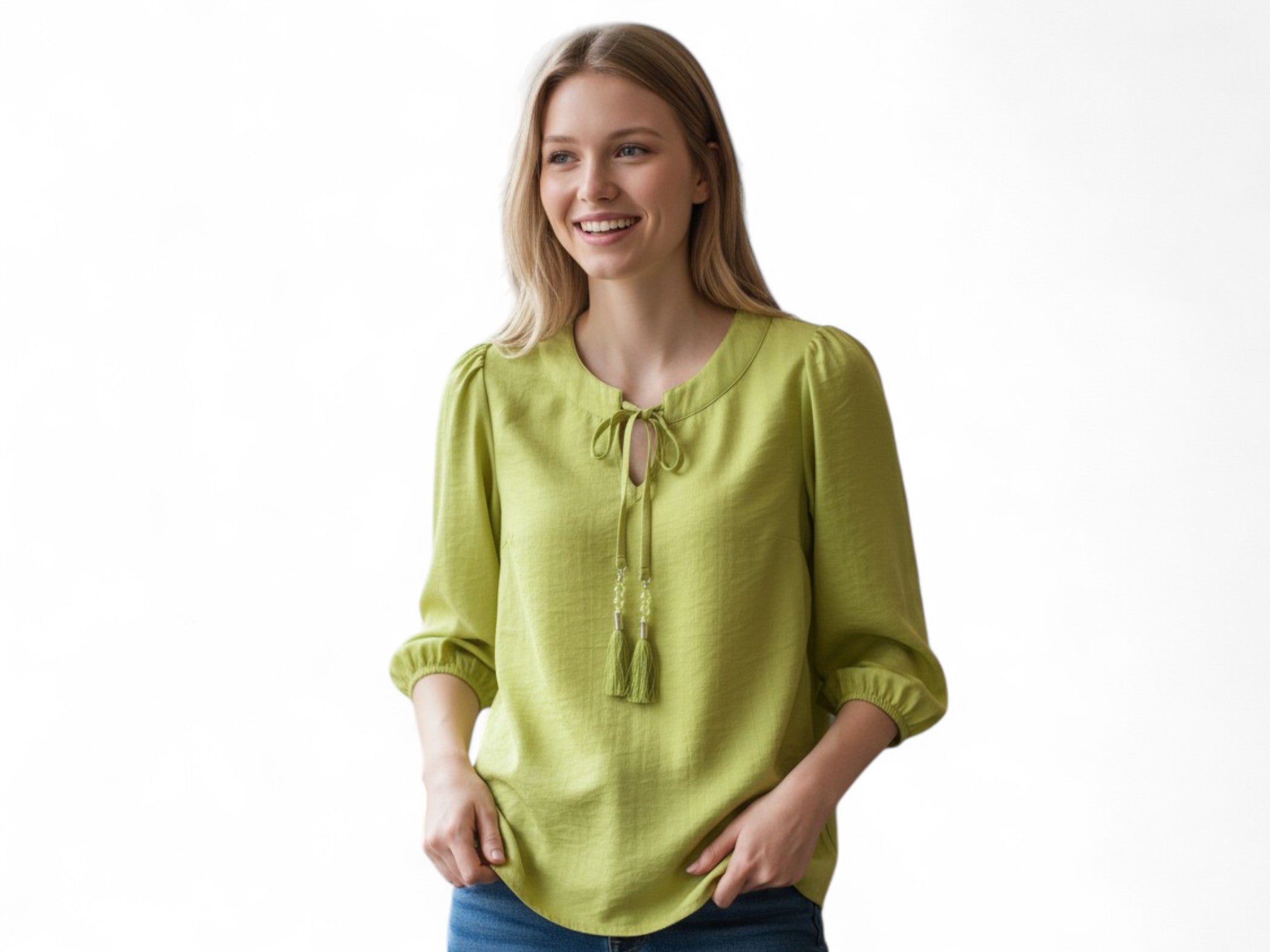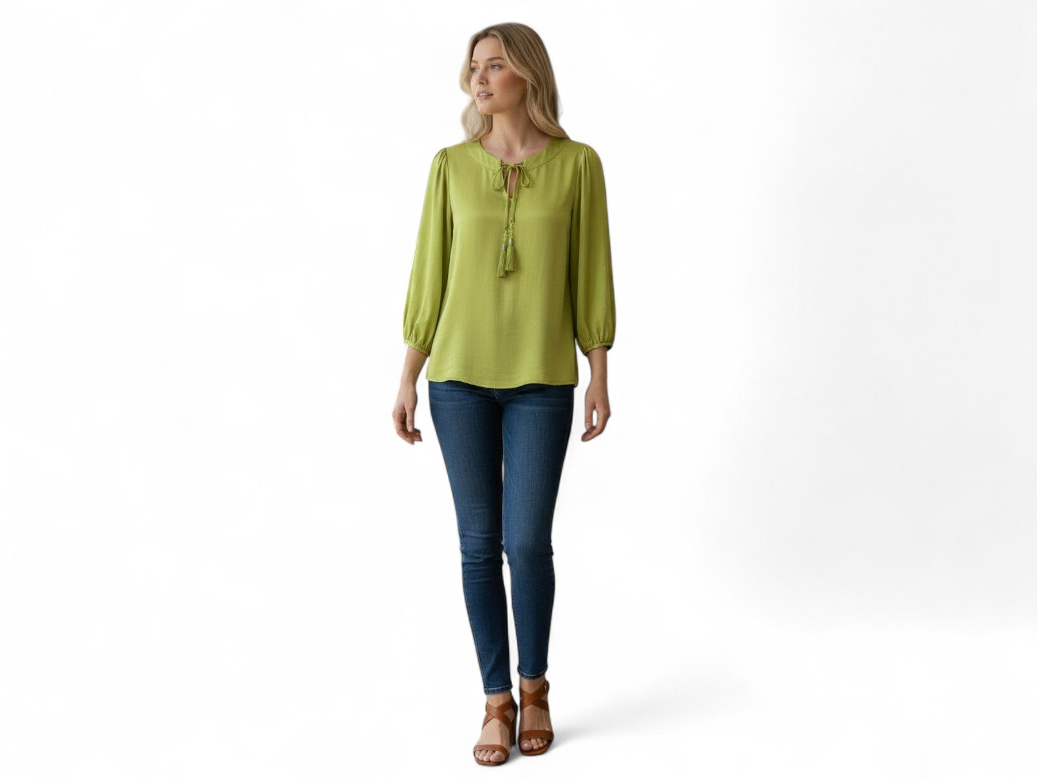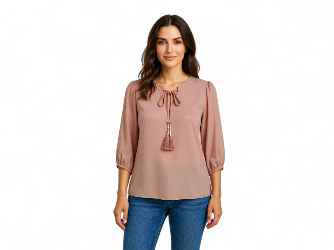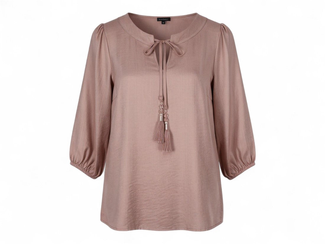 Blusa casual de manga 3/4 con cintas decorativas de la marca Rosys Chic.