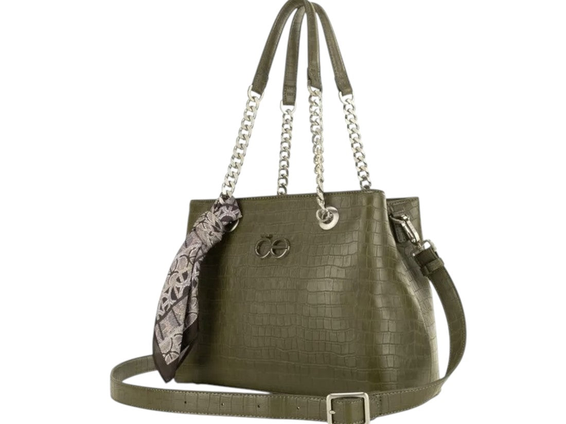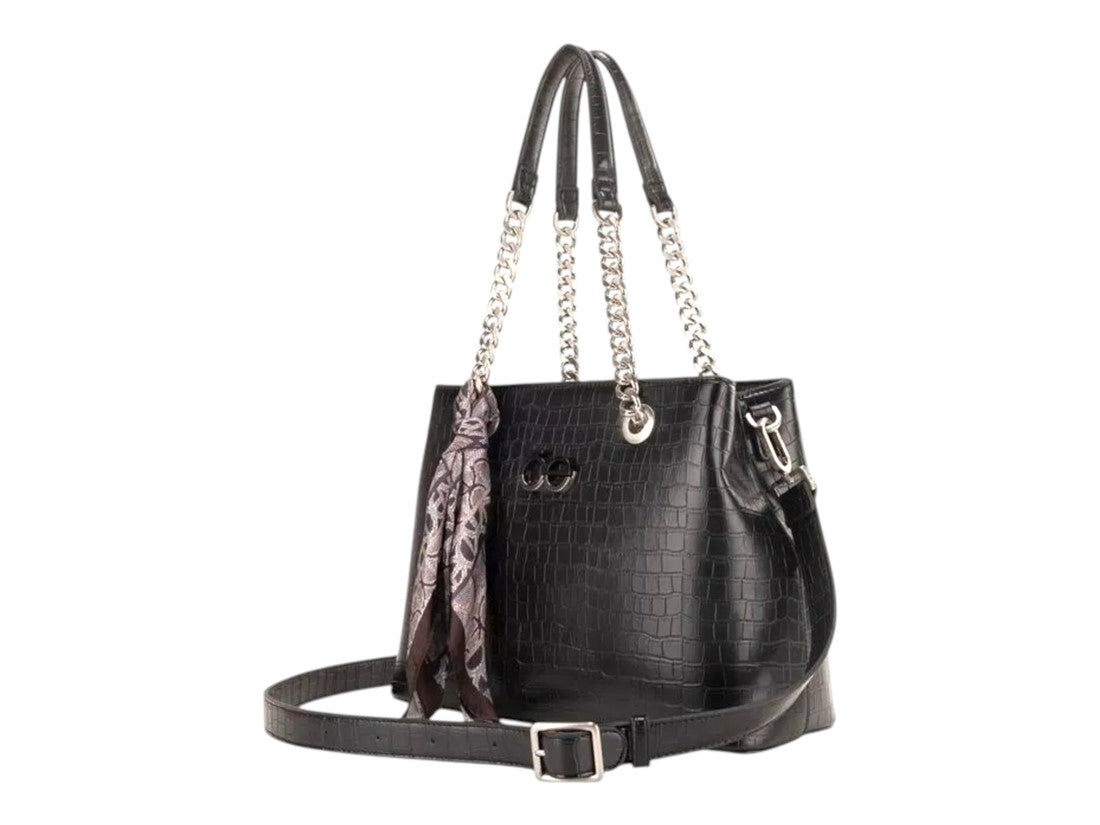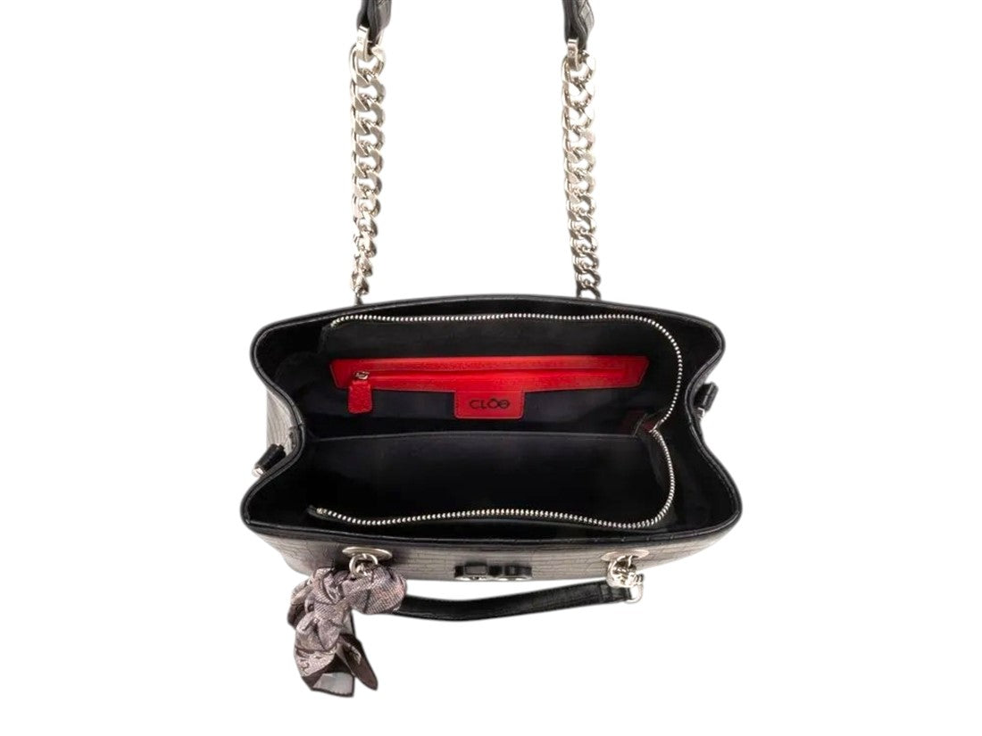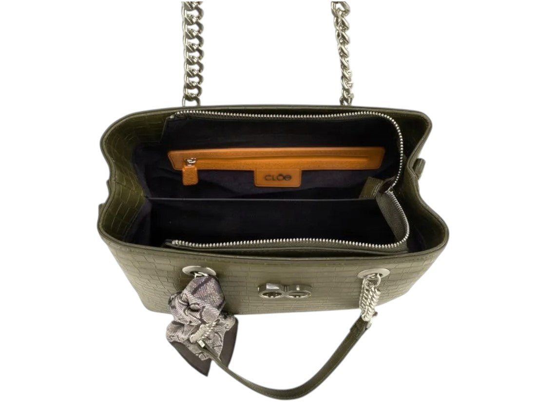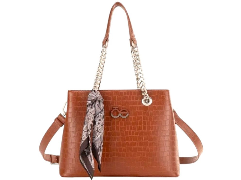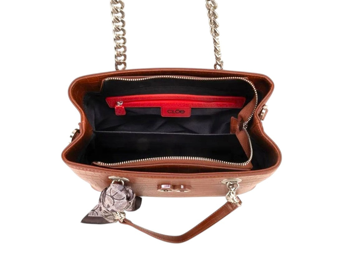 Bolso de hombro CLOE casual para mujer, con correa de cadena y decorado con mascada.