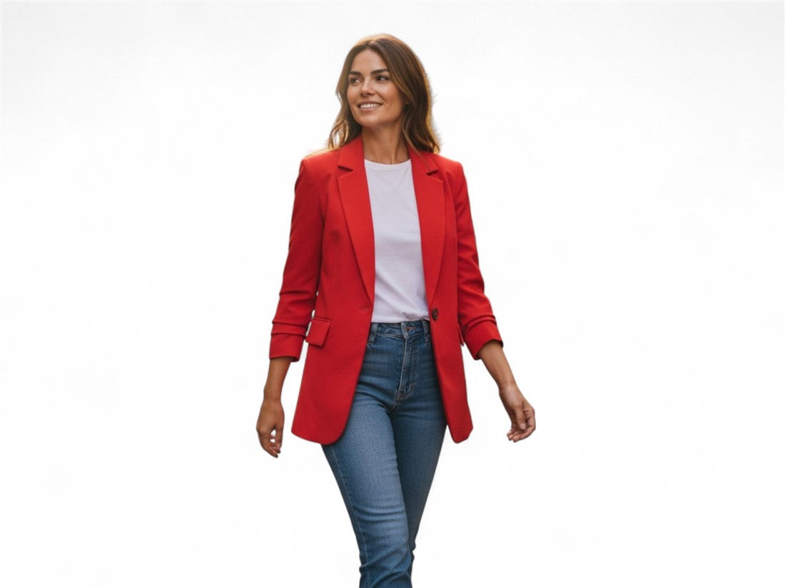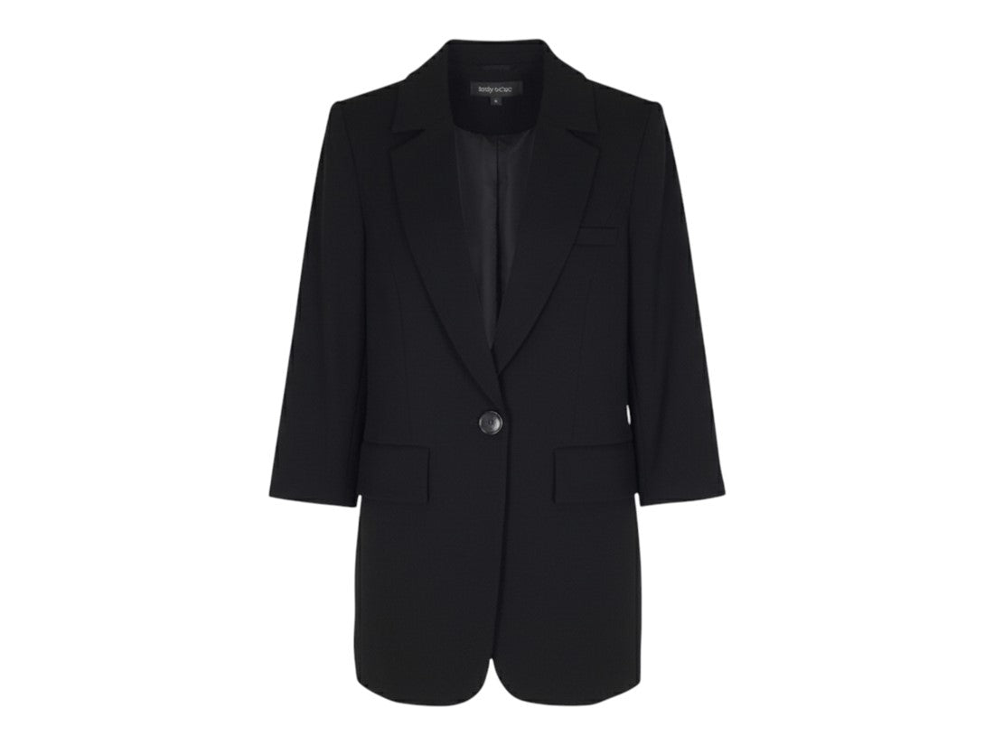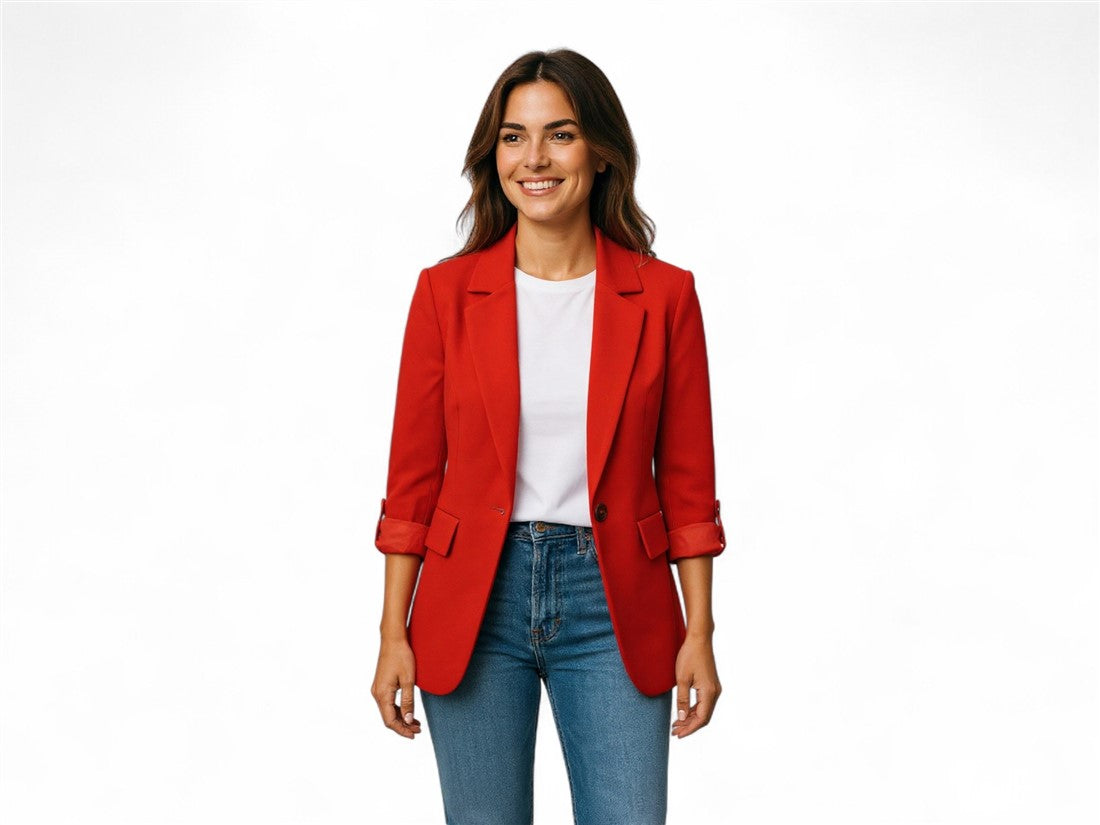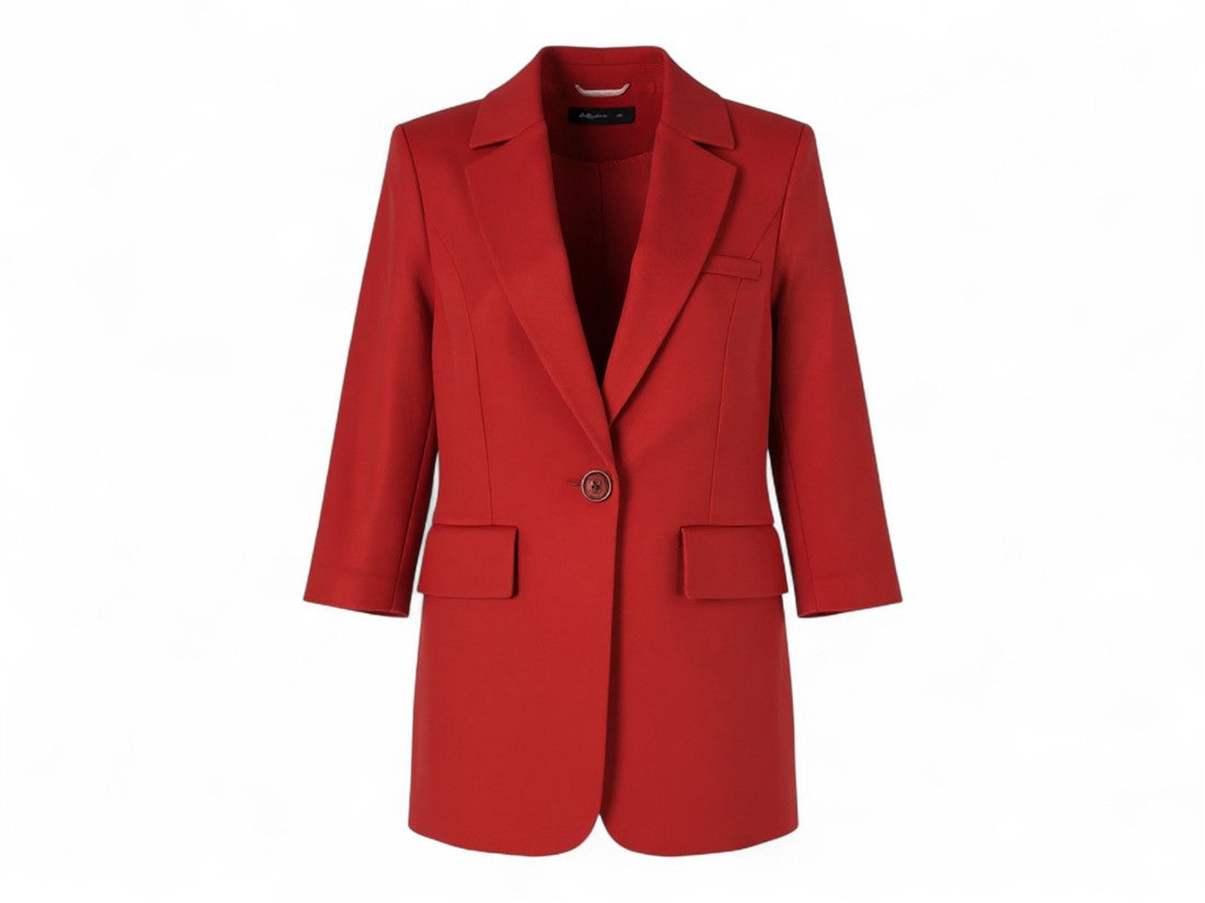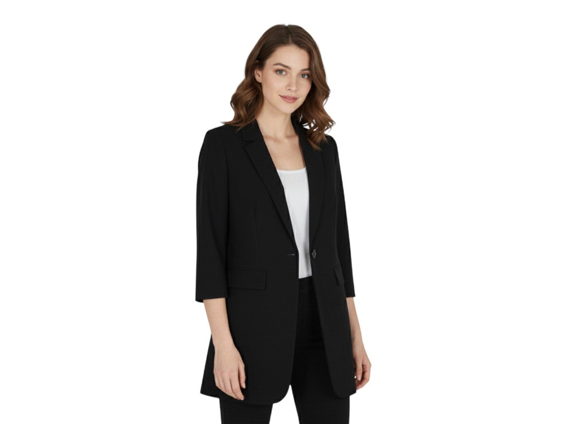 Saco de vestir para dama con solapa y manga 3/4, ideal para un estilo chic y elegante.