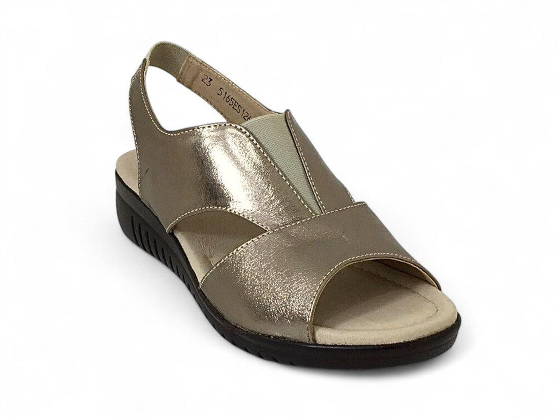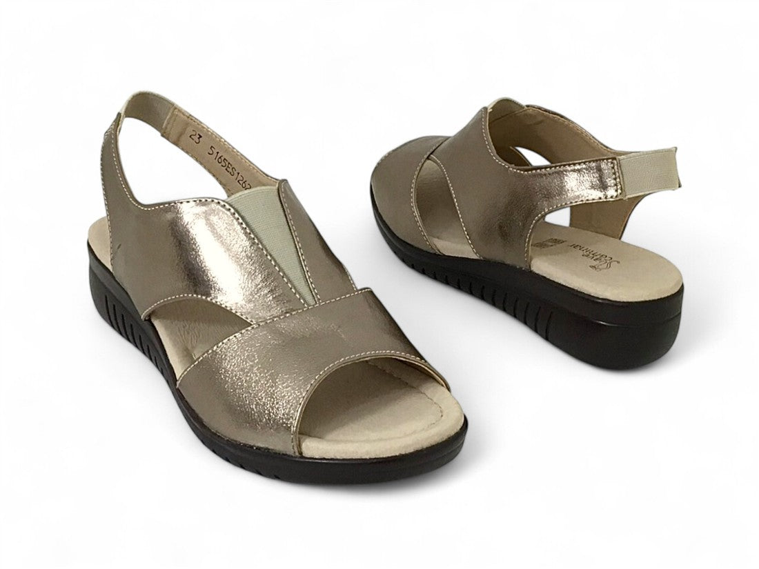 Descubre el estilo y confort de la sandalia cuña SUAVE CAMINAR, modelo 5165 de piel. Ideal para mujeres que buscan un calzado casual y elegante, disponible en tallas del 22 al 28. Su diseño único combina un elástico en talón y empeine para un mejor ajuste con un atractivo toque metálico. La suela antideslizante garantiza seguridad en cada paso. Perfecta para complementar tu look diario con gracia y comodidad.