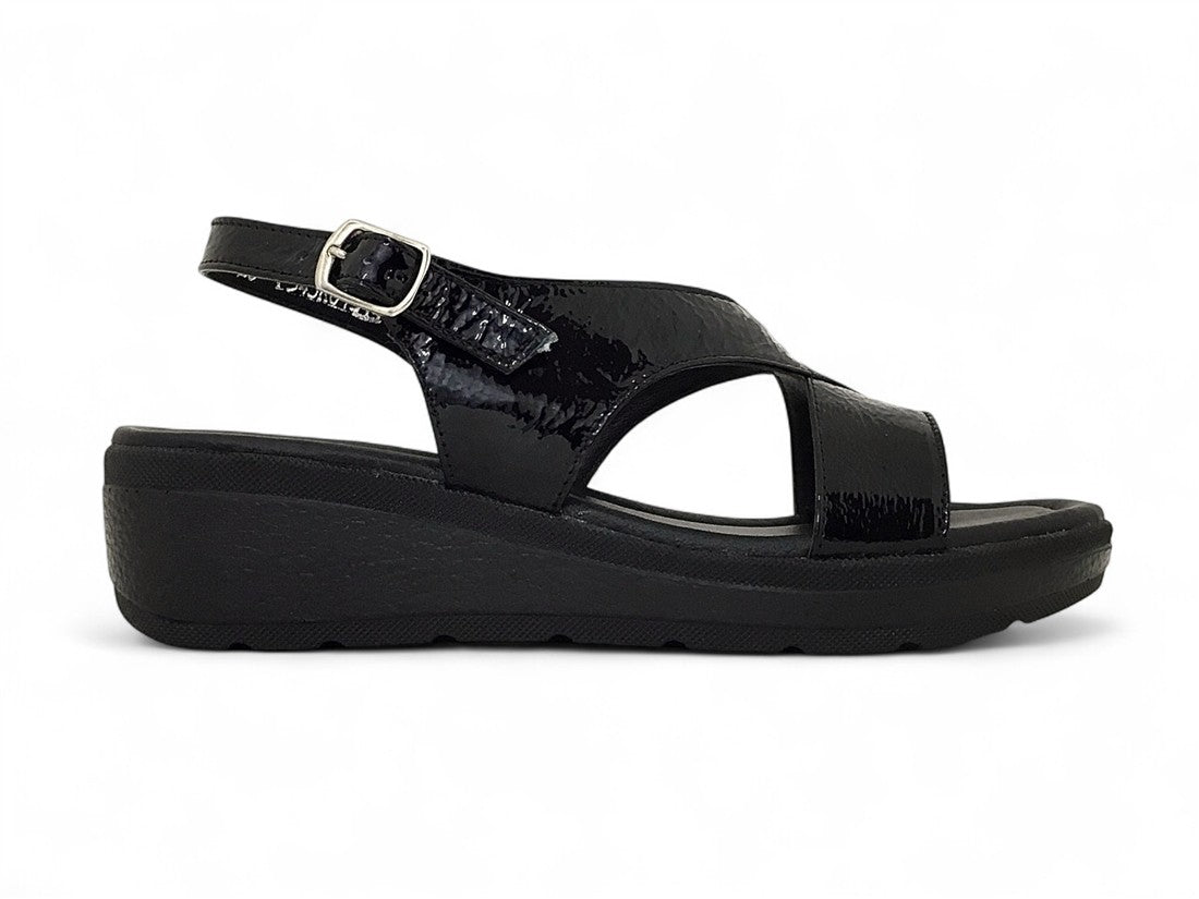 SANDALIA CUÑA AJUSTE CON CORREA DE HEBILLA LATERAL EN TALON DISEÑO METALICO Y SUELA ANTIDESLIZANTE