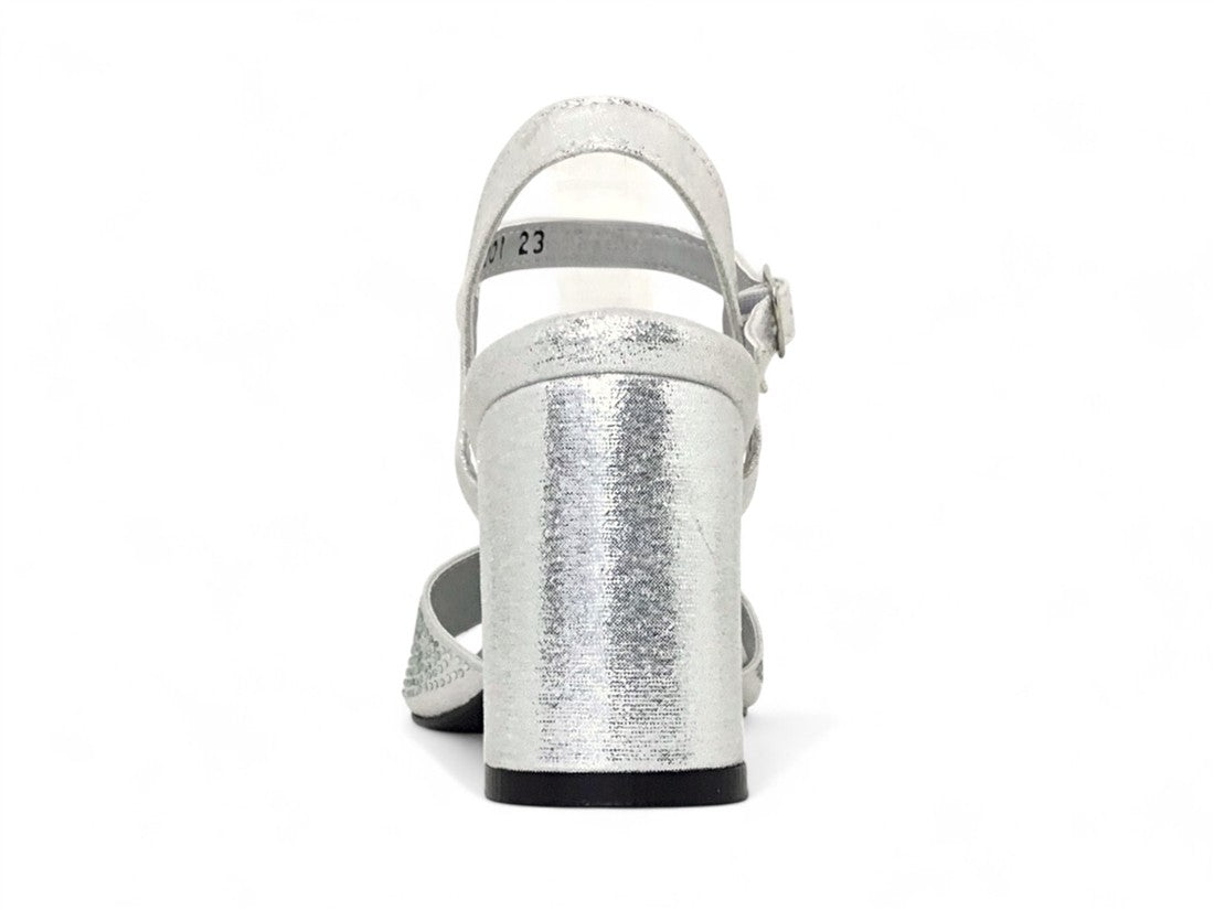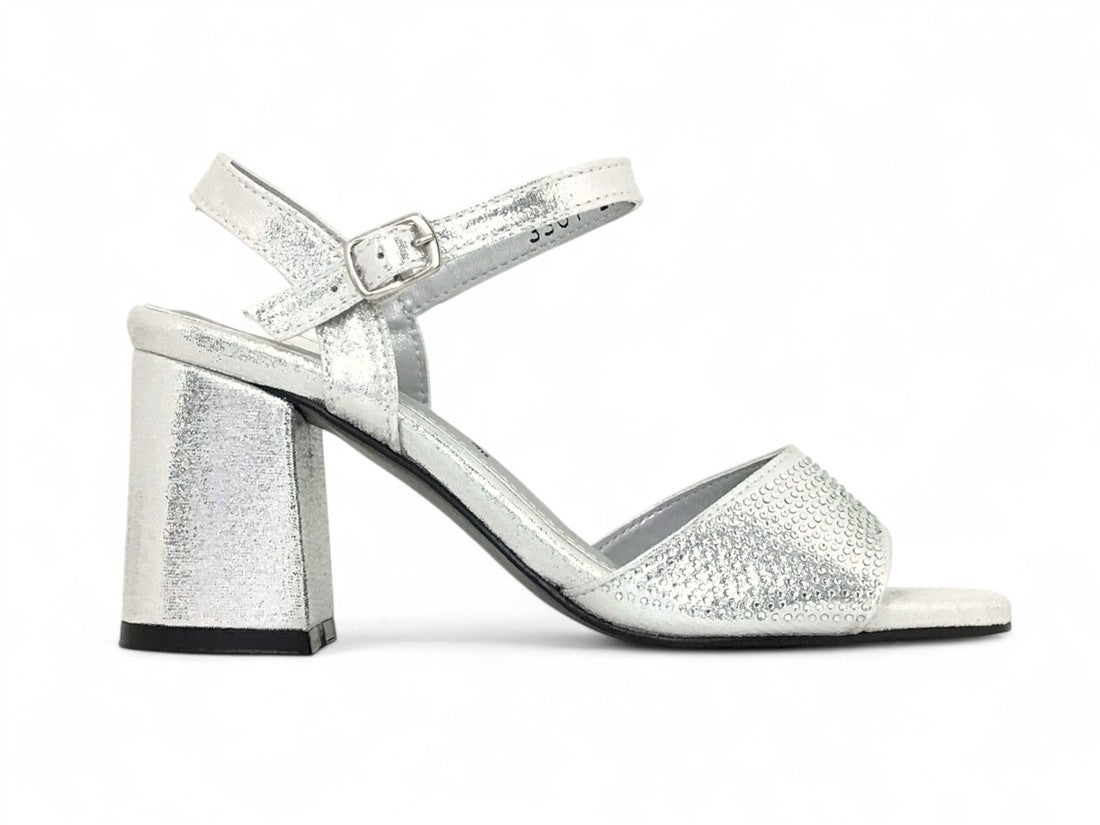 Sandalia de fiesta para mujer con tacón y ajuste de hebilla al tobillo. De Melissa García.