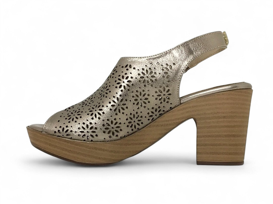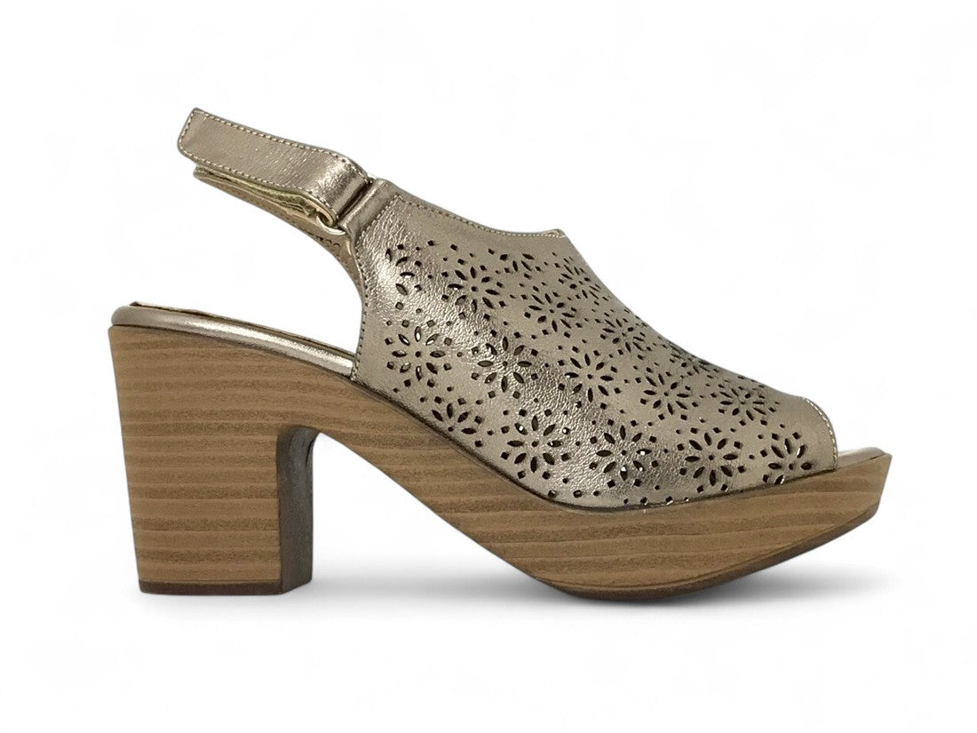 Sandalia casual para dama, tacón amaderado, estilo perforado y ajuste cómodo de velcro.