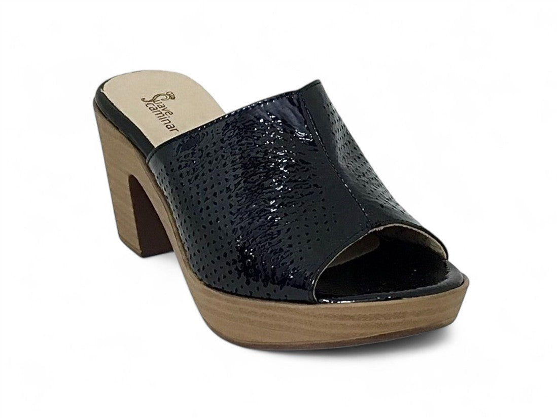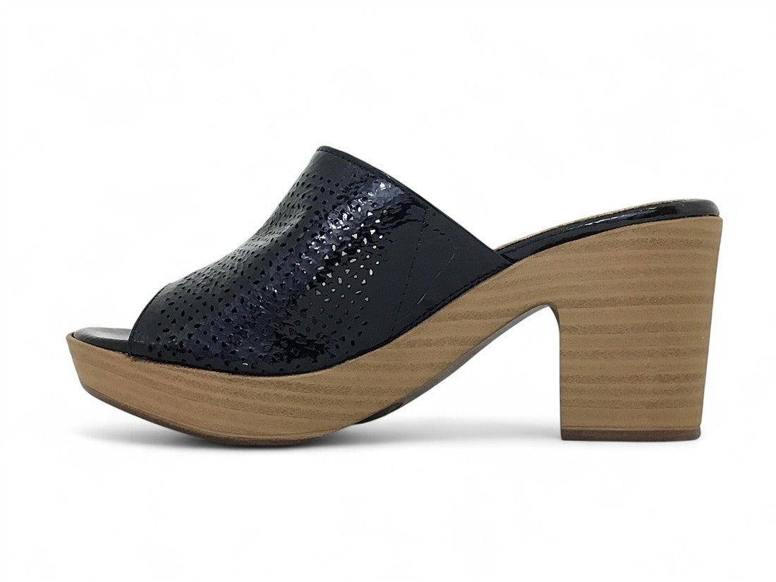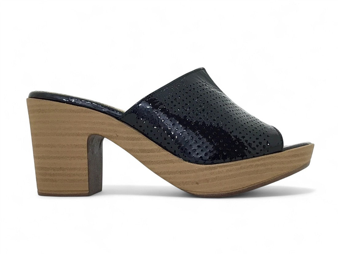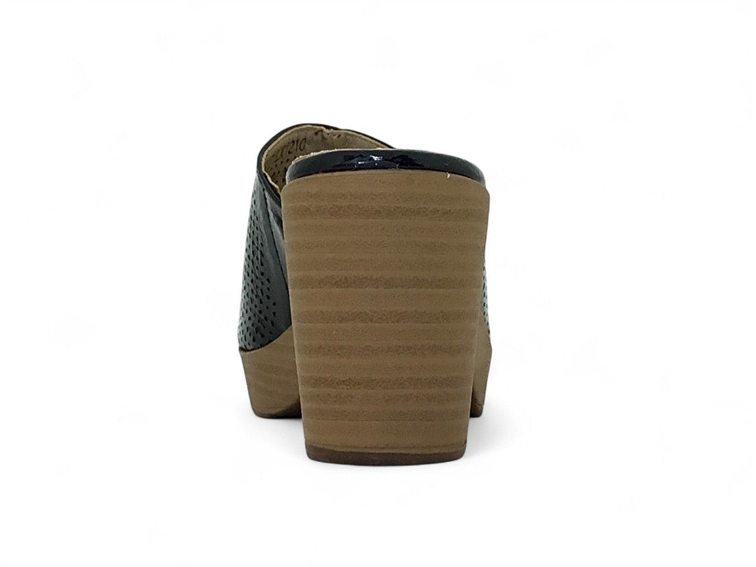 Sandalia casual destalonada para mujer, estilo zueco con tacón maderado.