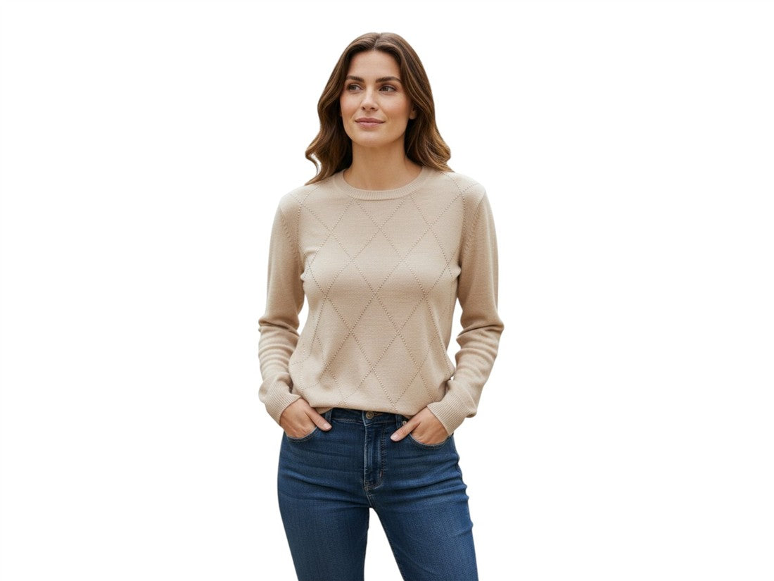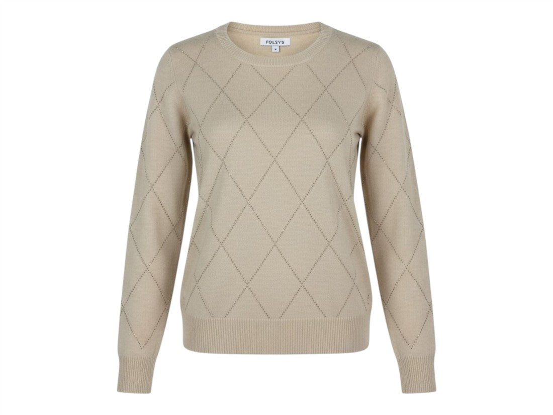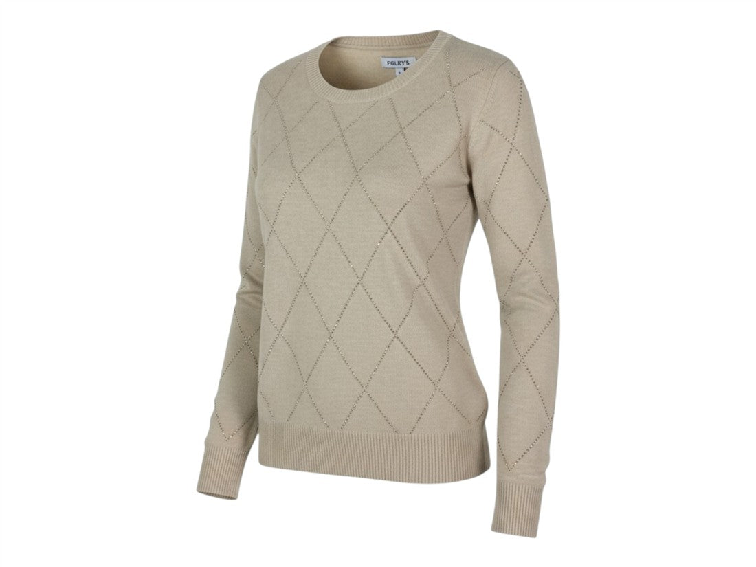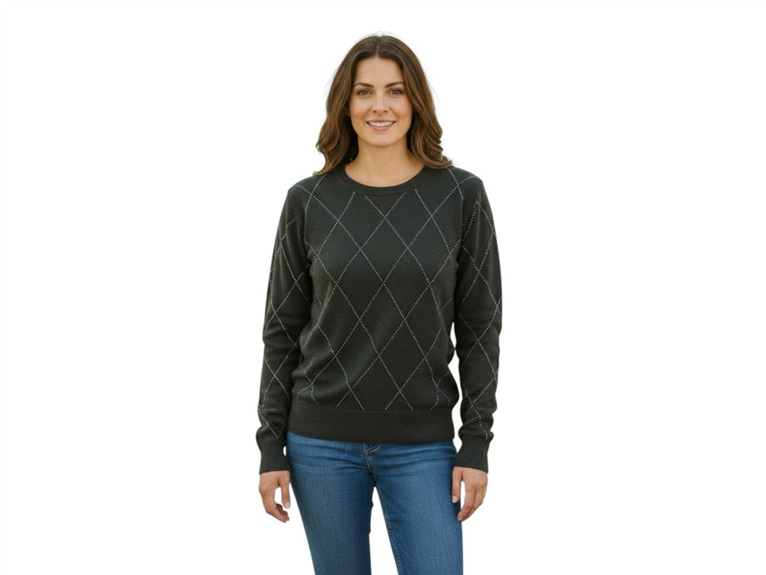Suéter casual FOLEYS para dama con diseño de rombos brillantes. Perfecto para cualquier ocasión.