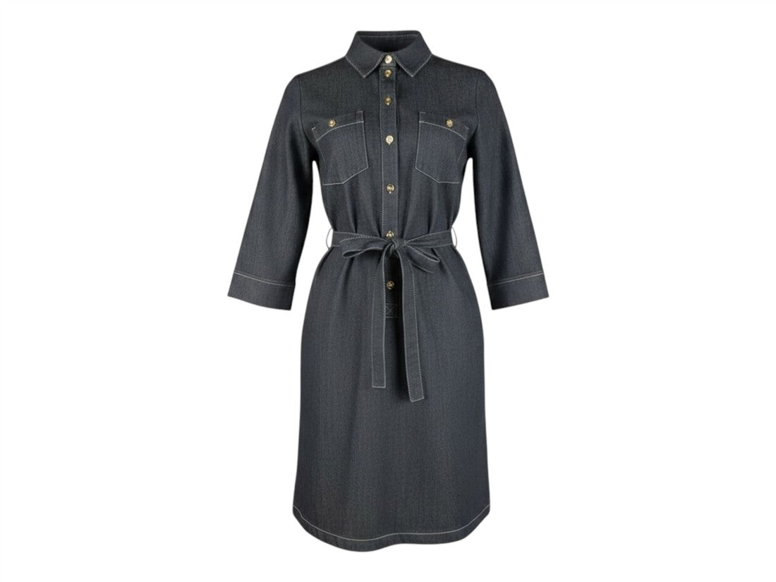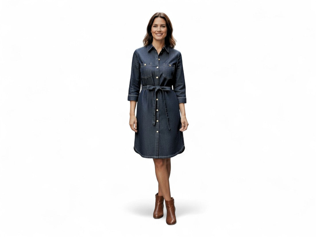 Descubre el vestido casual de mezclilla oscura de FOLEYS, ideal para el estilo diario de mujer.