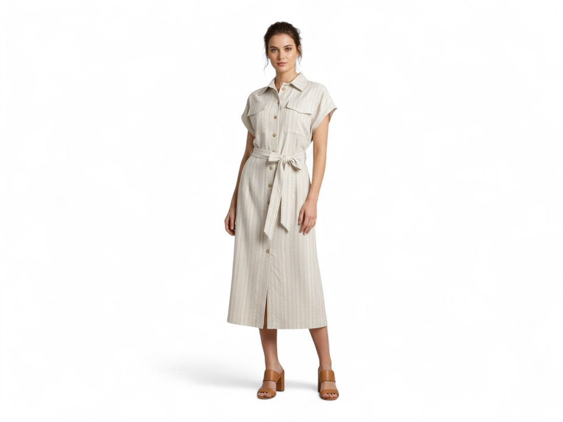 Vestido casual de rayas con cinturón para mujer de la marca JTA ER. Ideal para cualquier ocasión.