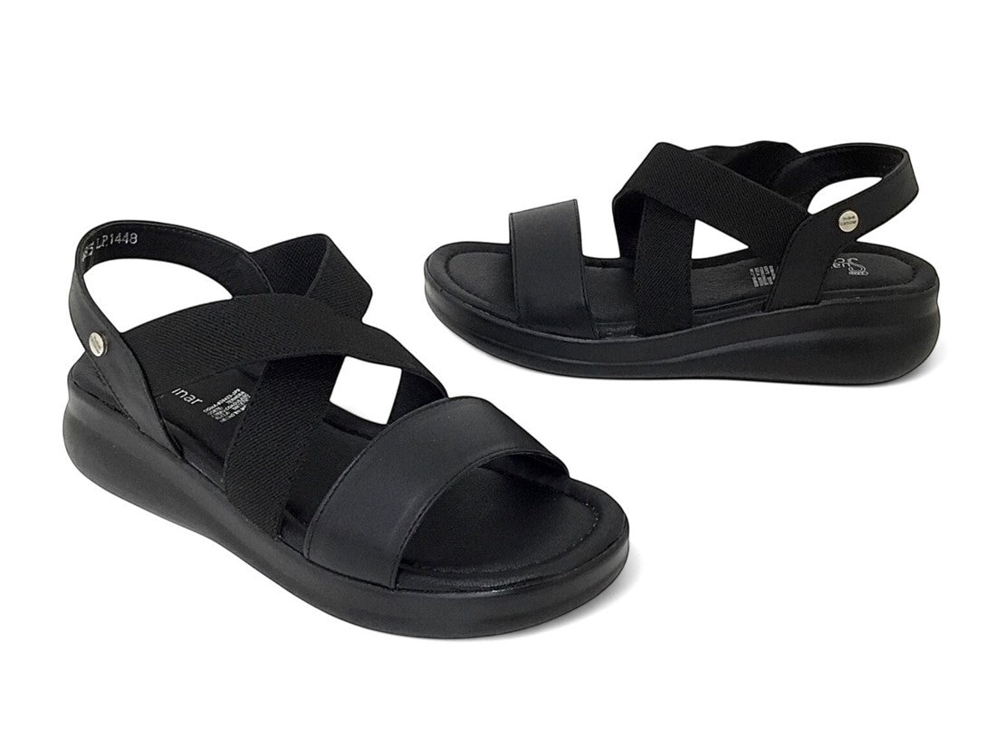 SANDALIA CUÑA CON TIRAS ELASTICAS EN EMPEINE DISEÑO DE TIRA AL FRENTE Y SUELA ANTIDESLIZANTE