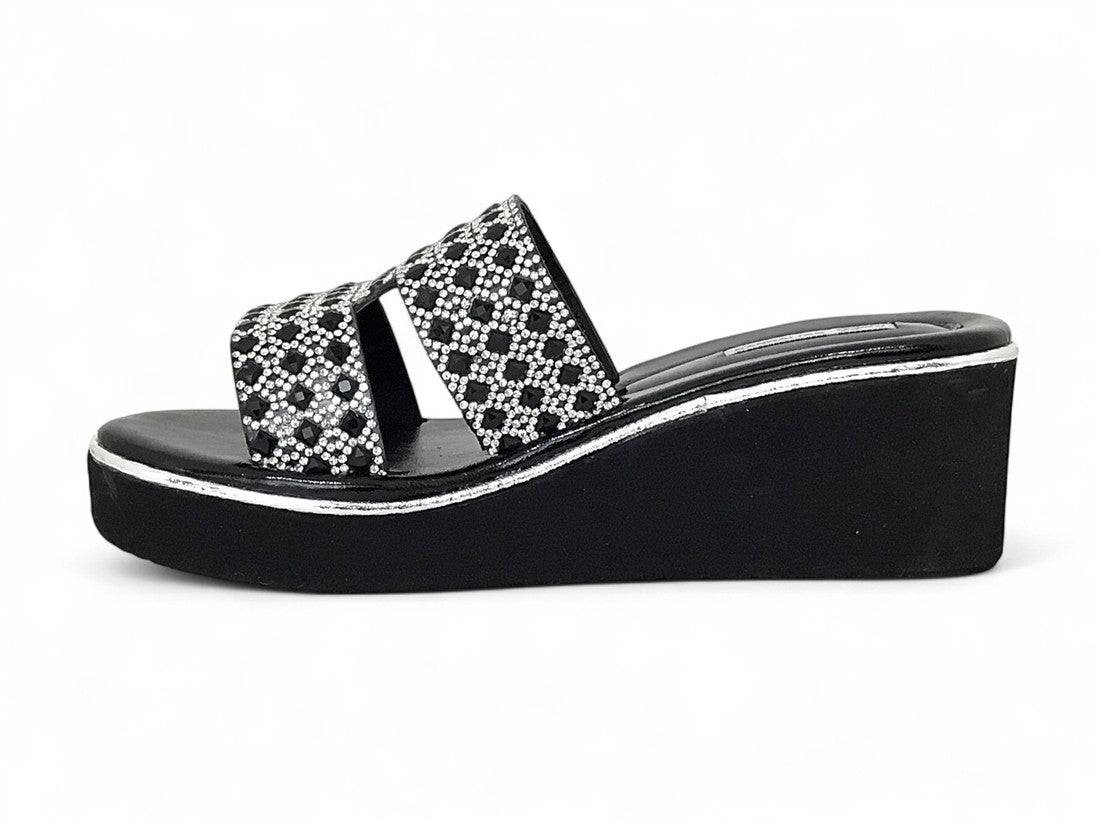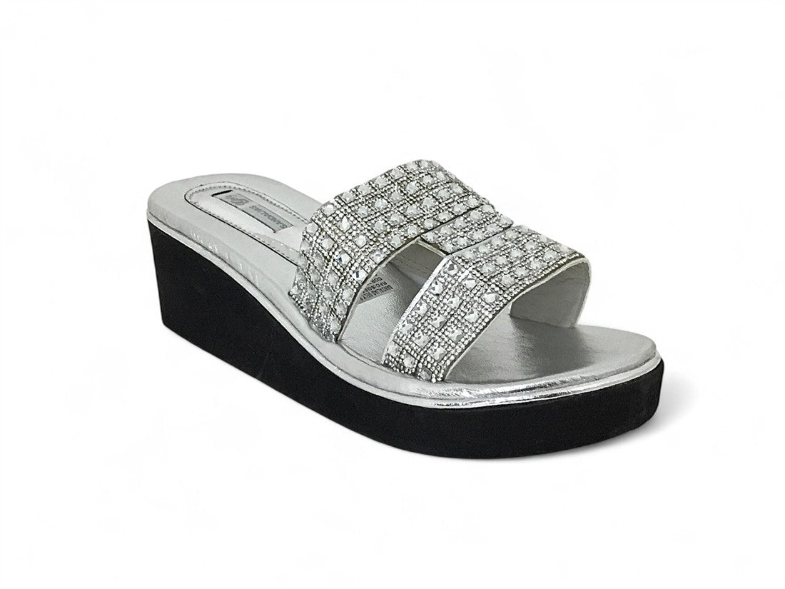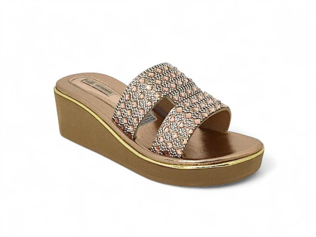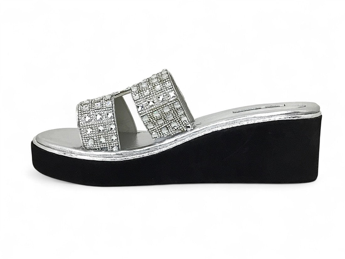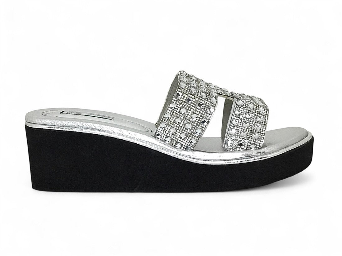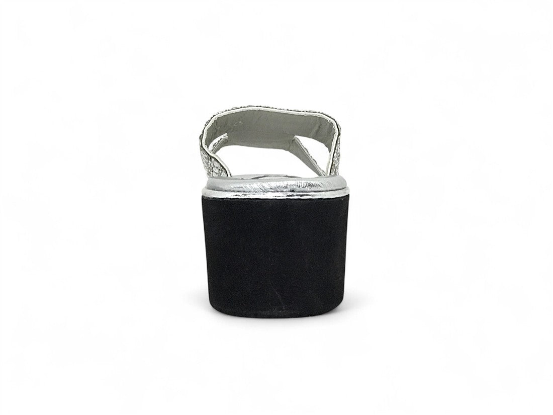 SANDALIA PLATAFORMA CON DETALLE METALICO DISEÑO CON PURPURINA BRILLANTE Y SUELA ANTIDESLIZANTE
