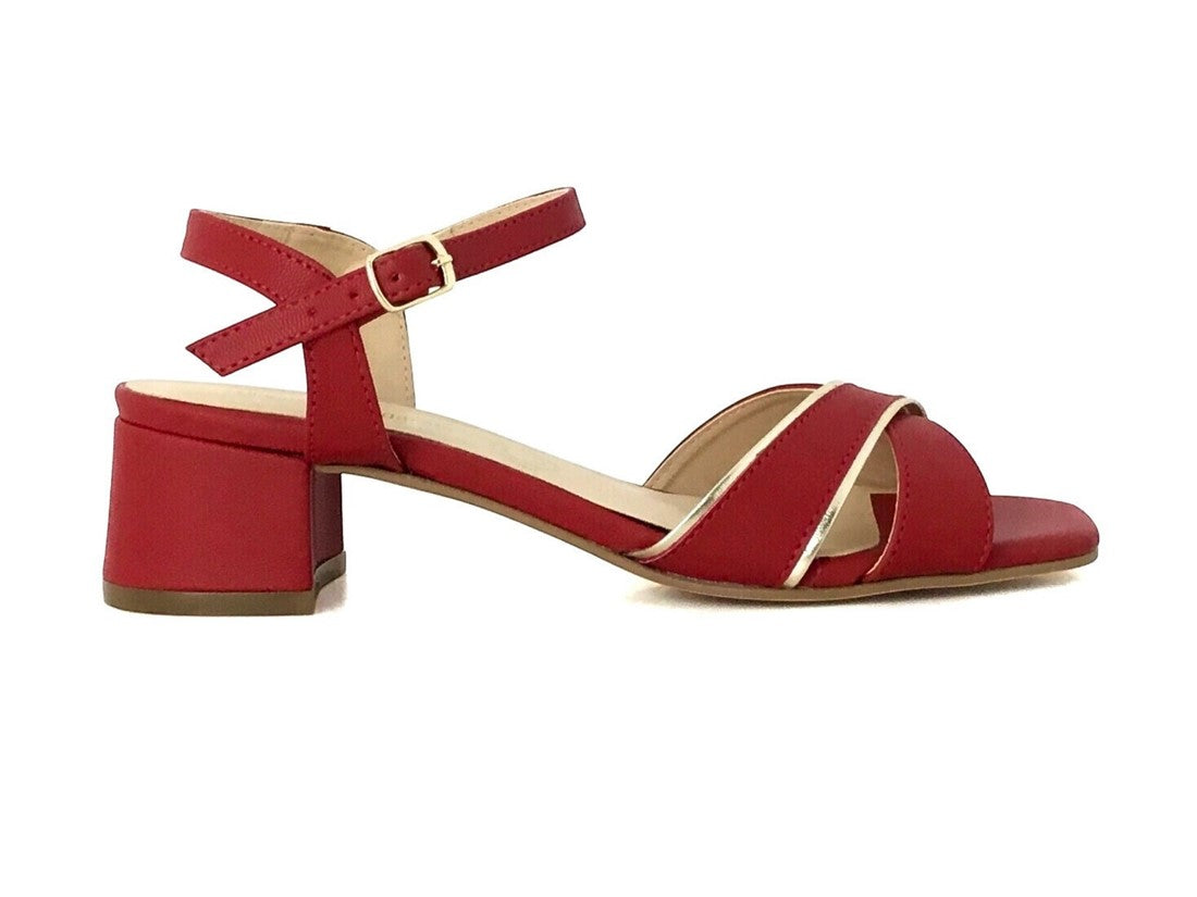 SANDALIA TACON AJUSTE DE CINCHO EN TOBILLO Y DETALLE DORADO EN TIRAS CRUZADAS