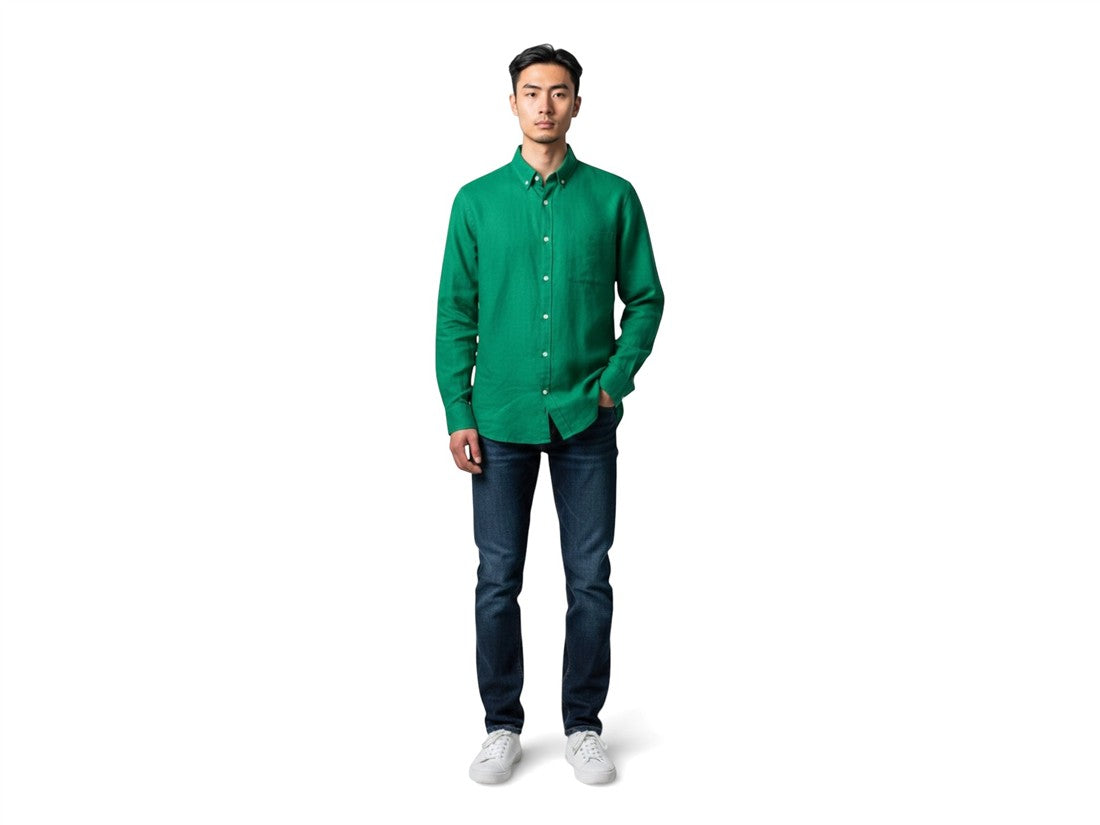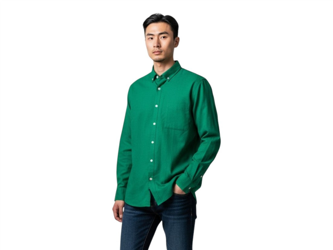 Camisa casual de manga larga en color liso, ideal para hombres con estilo. Marca: ALBERTO OLGUIN.