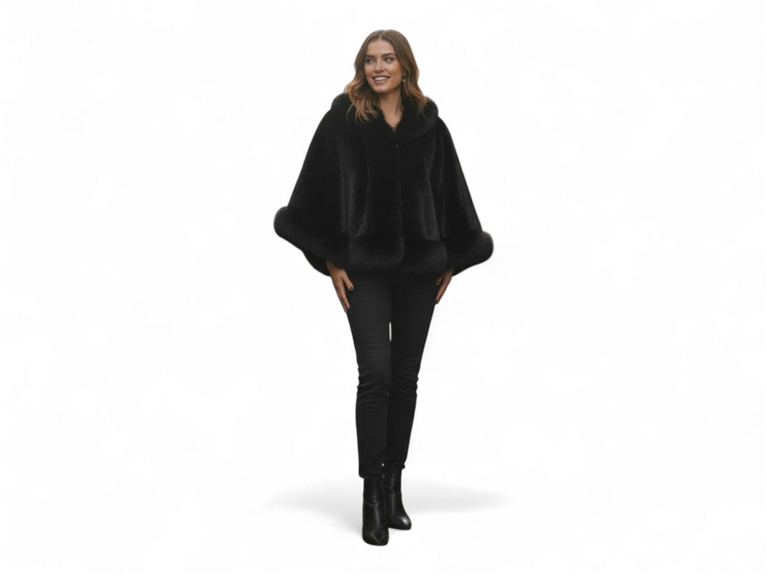 Capa de Invierno con Capucha y Ribete de Piel Sintética de Lujo - PRECOZ EKM2416
