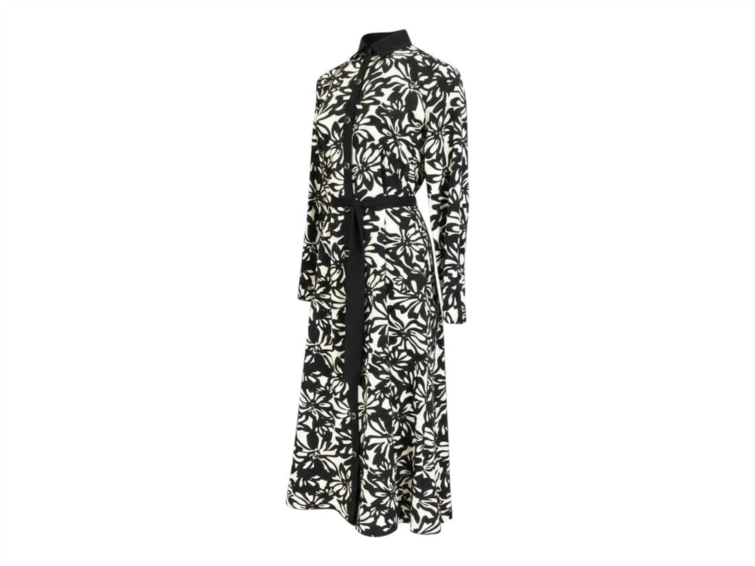 Vestido estampado ANN KLEIN de cuello alto, manga larga y cinta ajustable para un estilo casual.