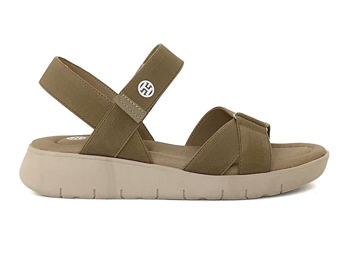 Descubre la sandalia cuña de HISPANA, diseñada para brindar confort y estilo a cada paso. Con ajuste de cinta de velcro y un sutil detalle del logo, es la opción ideal para mujeres que buscan calzado casual y moderno con suela antideslizante. Disponible en tallas del 23 al 27, su material elástico garantiza un ajuste perfecto. Perfecta para cualquier ocasión, esta sandalia combina funcionalidad y moda de manera impecable.