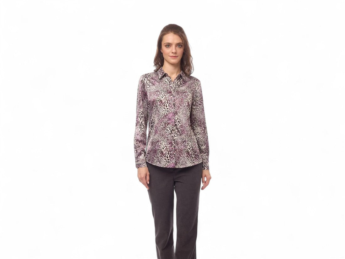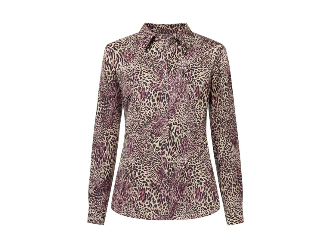 Blusa FOLEYS: elegante, manga larga, animal print, ideal para lucir sofisticada y a la moda.