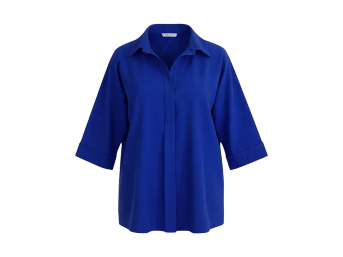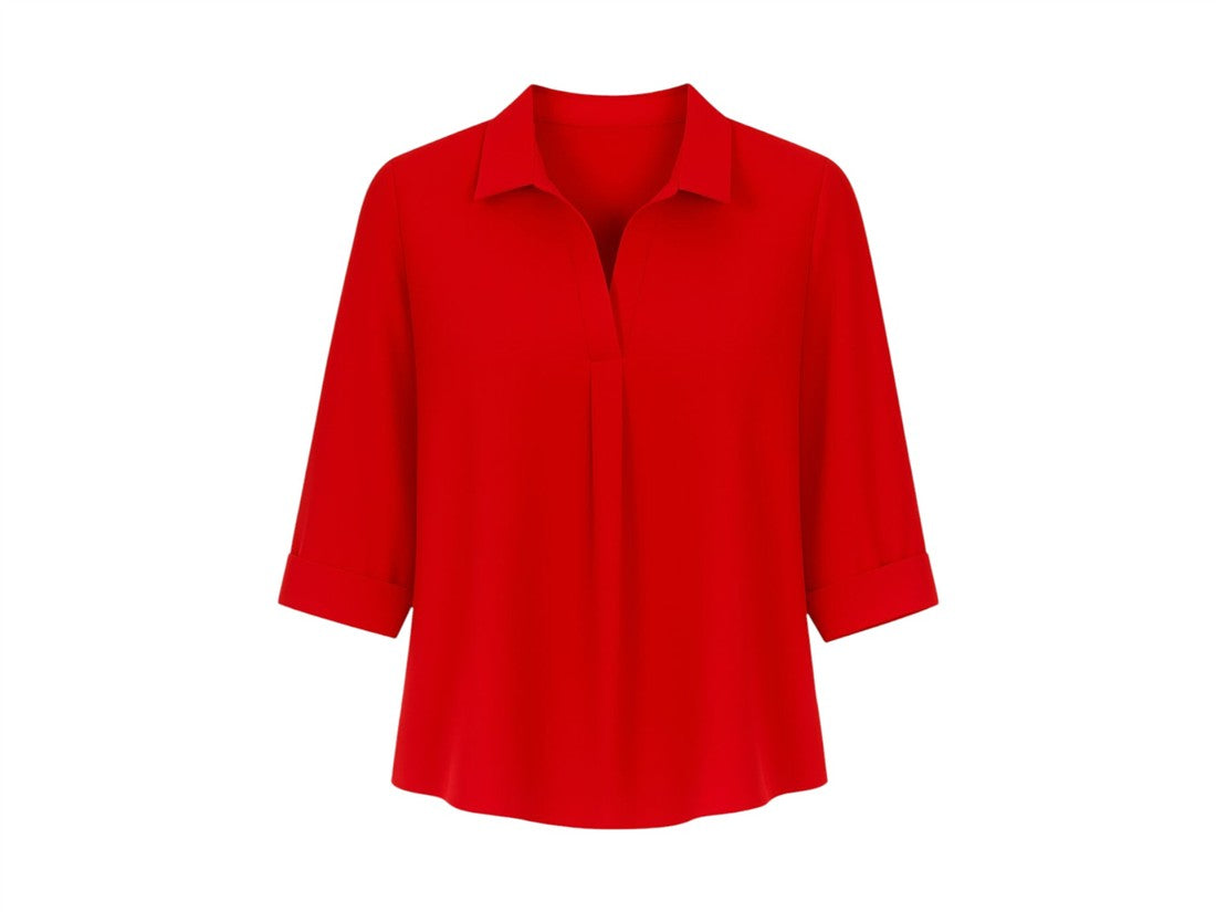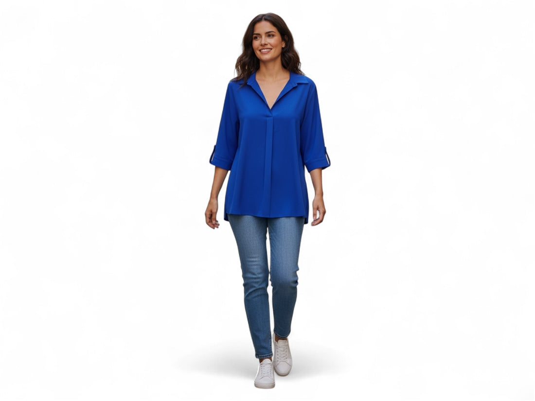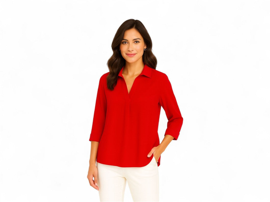 Blusa casual OKEY para mujer con manga 3/4 y elegante cuello en V.