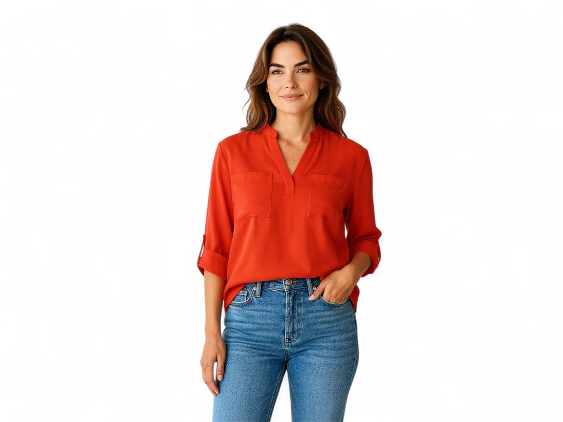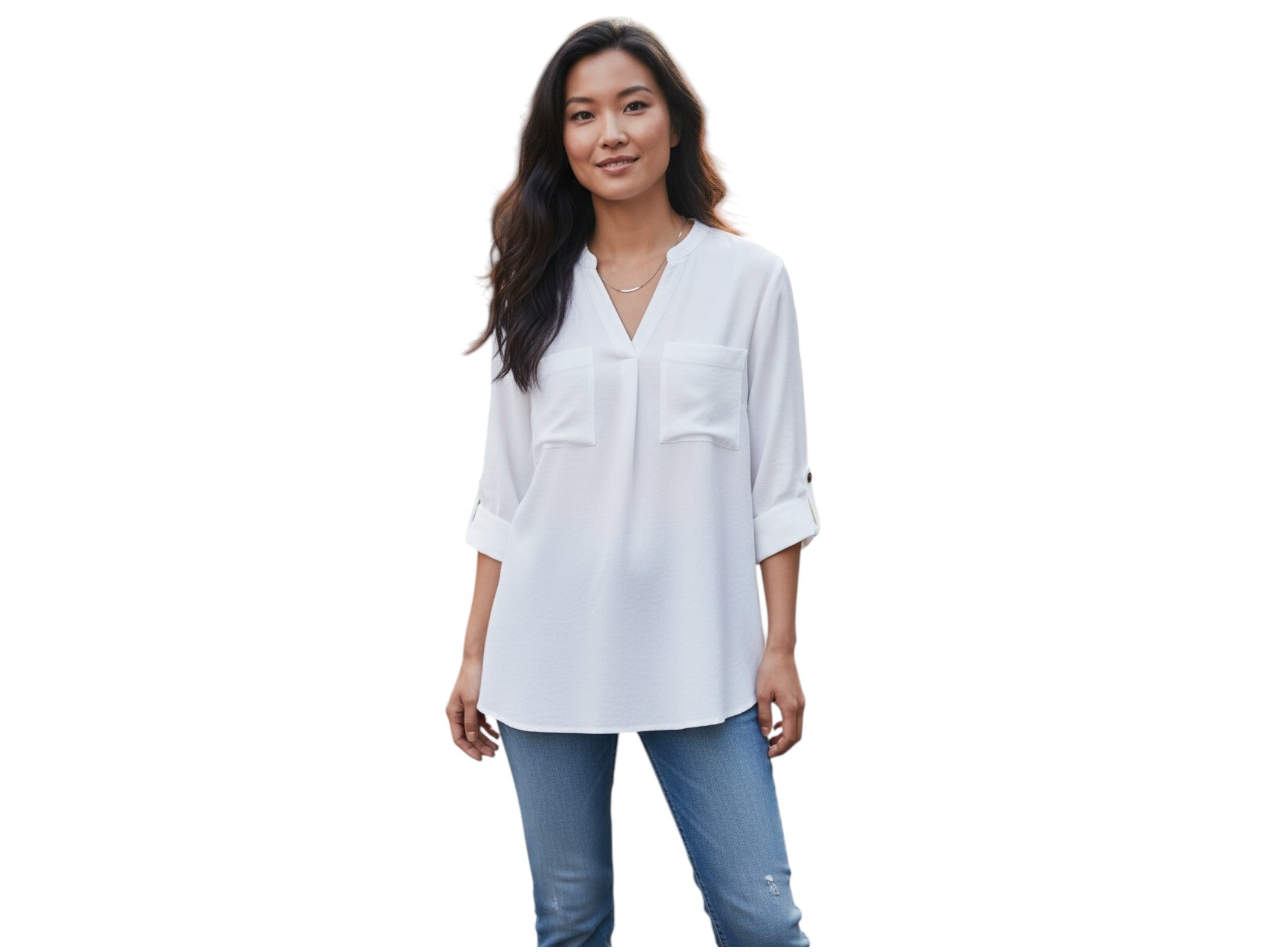 Blusa casual para dama, estilo manga 3/4 y cuello V, marca ROSYS CHIC.