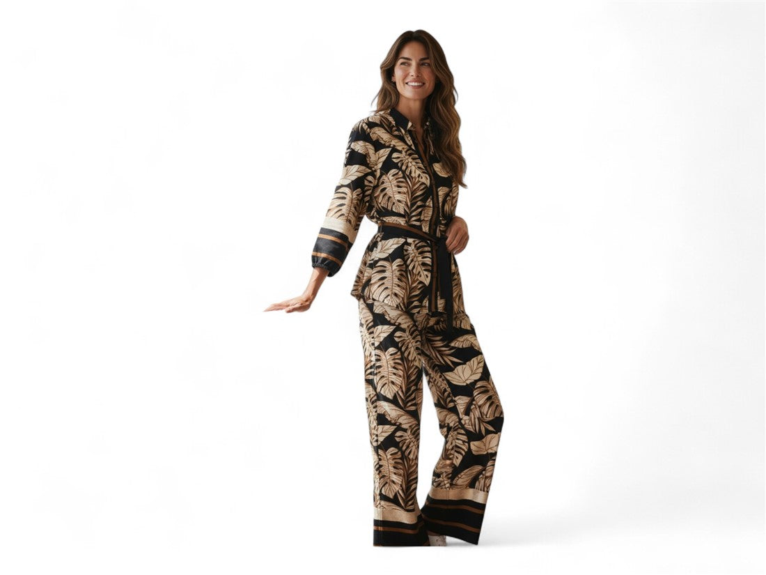 Conjunto casual de pantalón holgado y blusa con cinta en cintura para mujer de ROSYS CHIC.