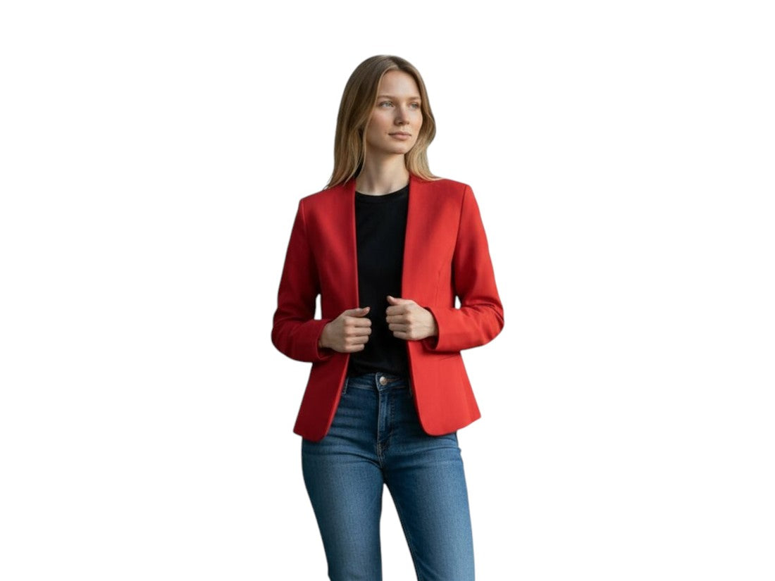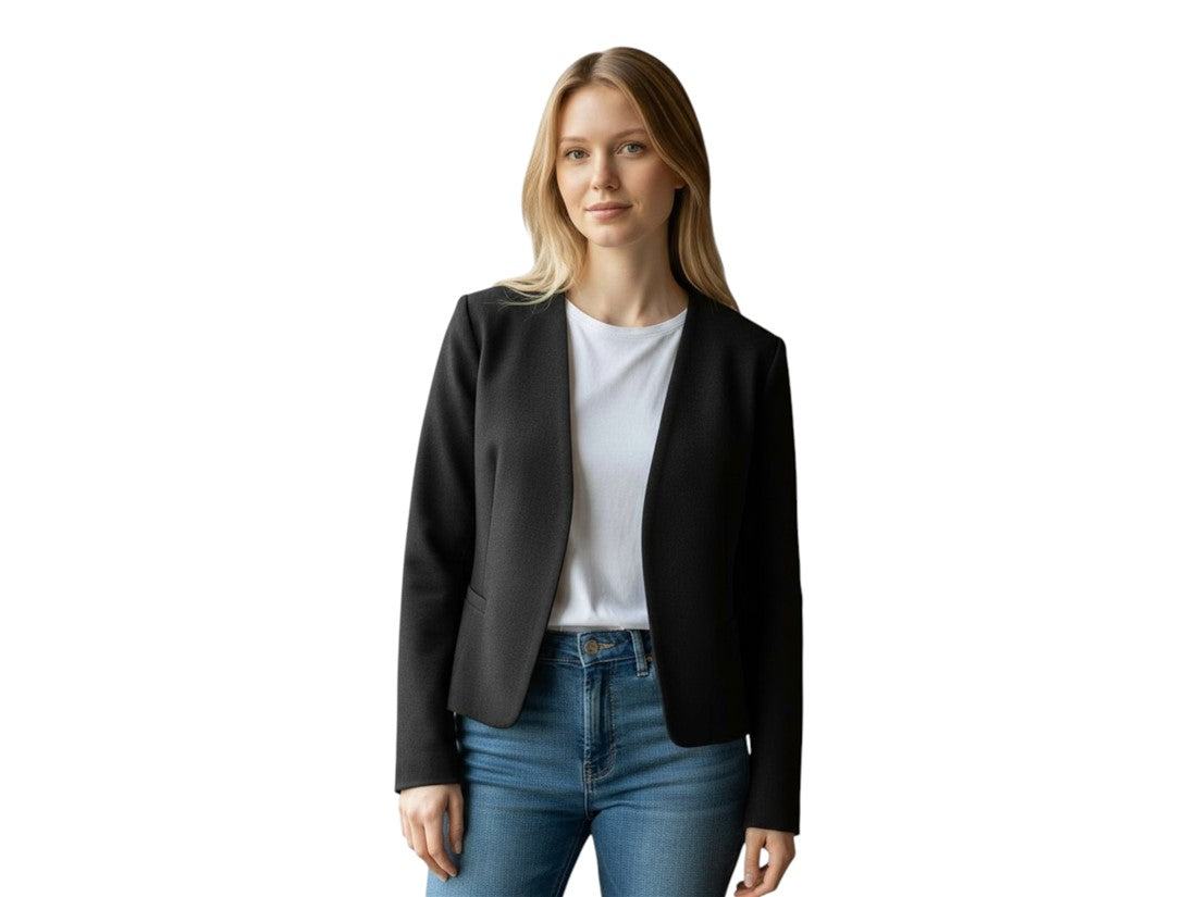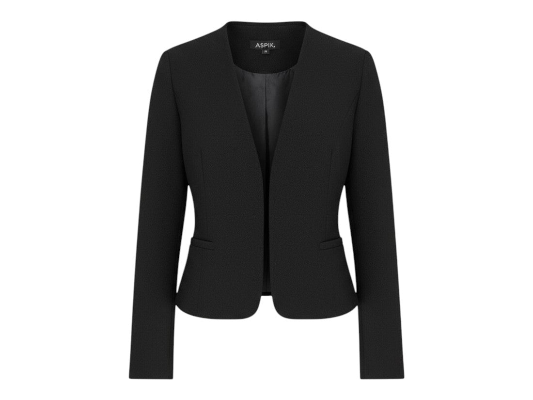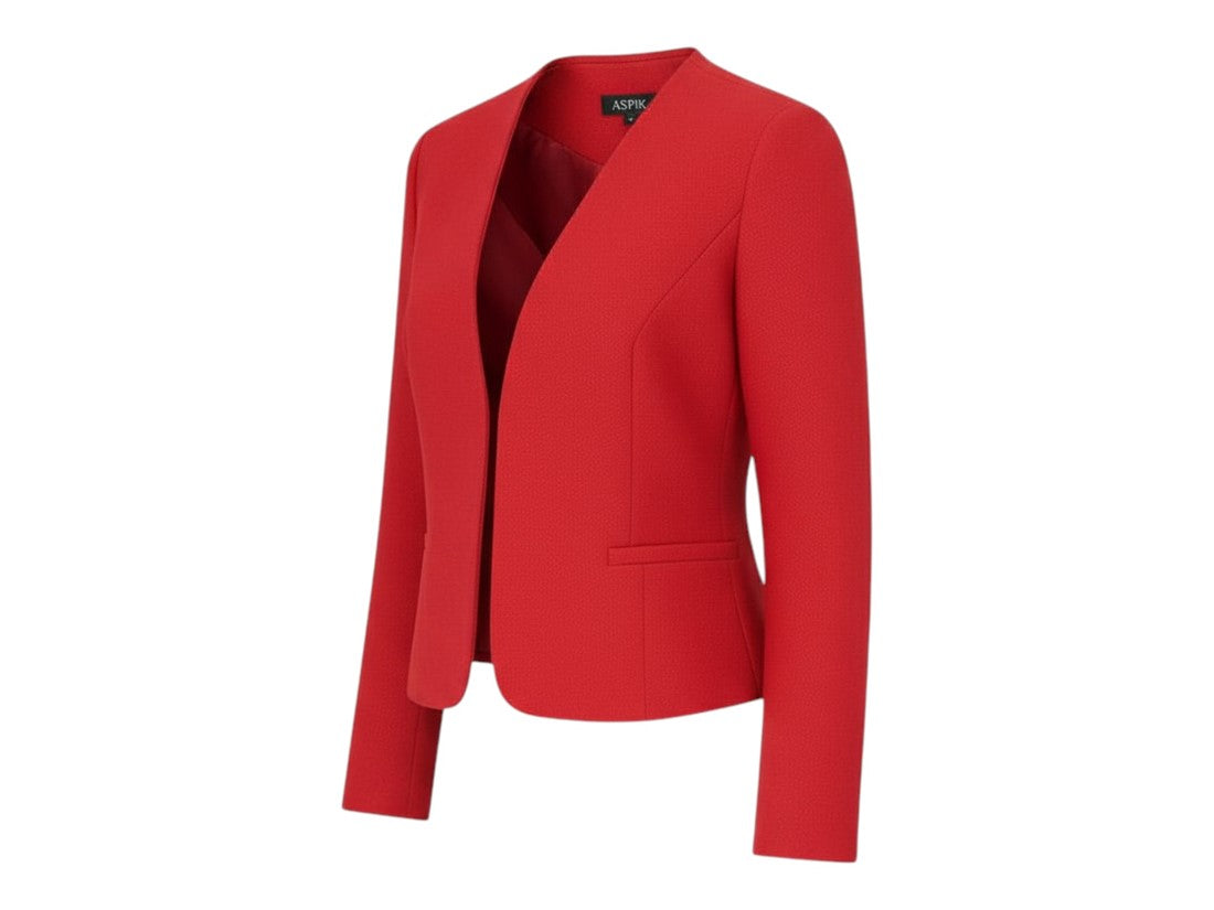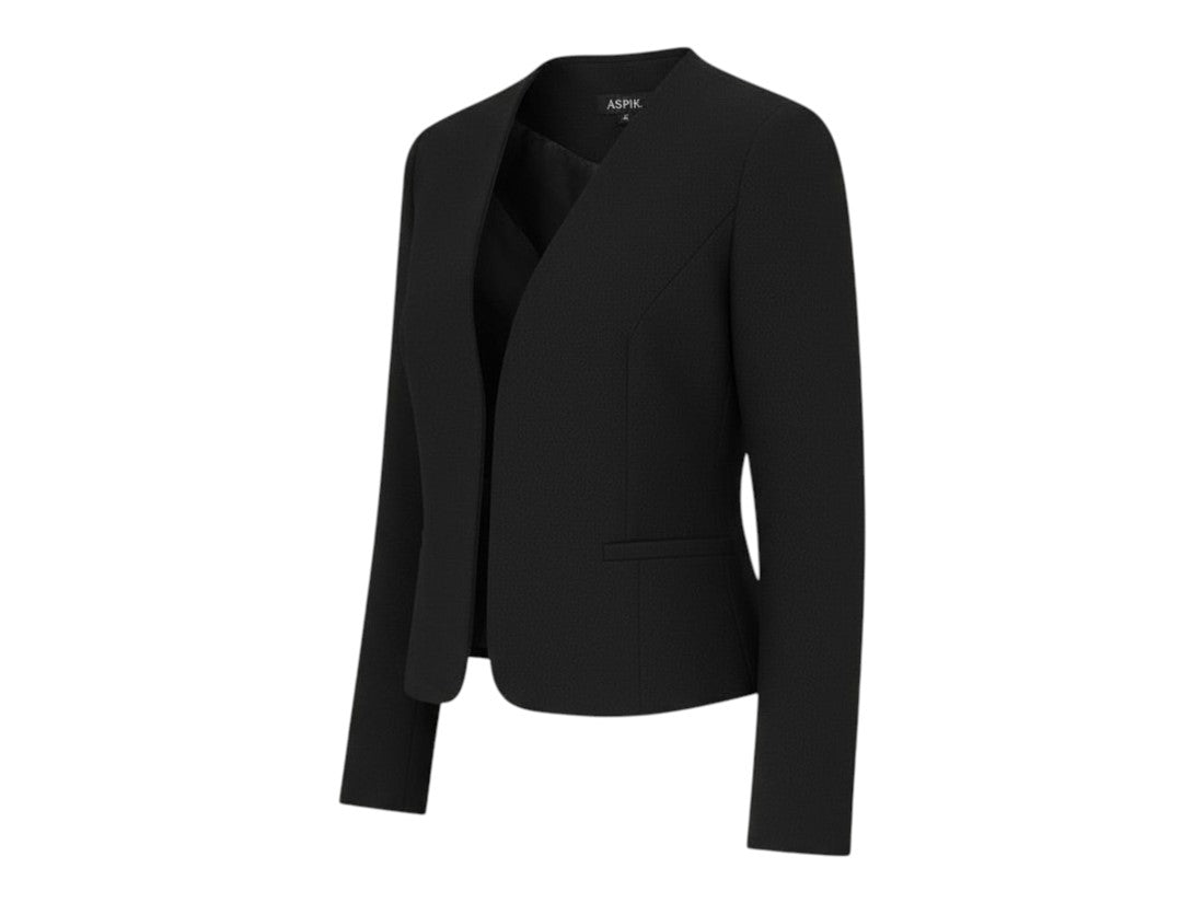 Saco minimalista sin solapa, corte sastre. Elegancia casual para la mujer moderna. Marca: ASPIK.