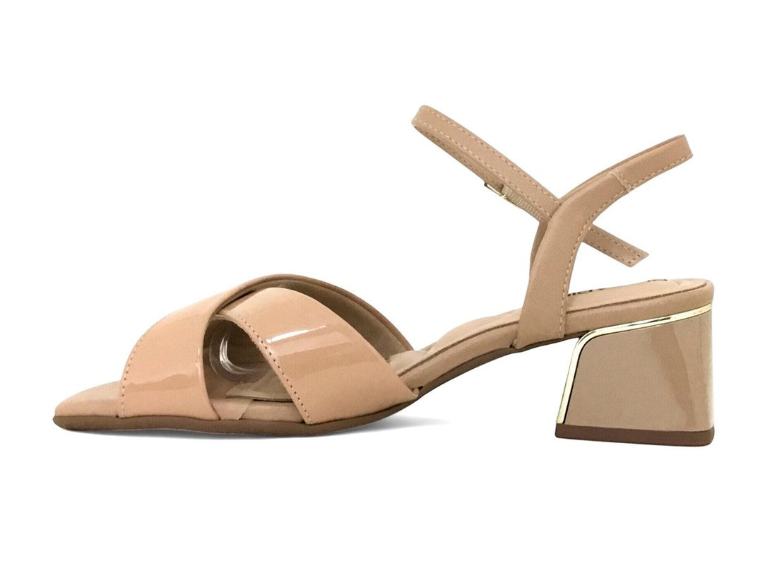 SANDALIA TACON CUADRADO CON DETALLES DORADOS AJUSTE CON CORREA DE HEBILLA DISEÑO DE TIRAS CRUZADAS