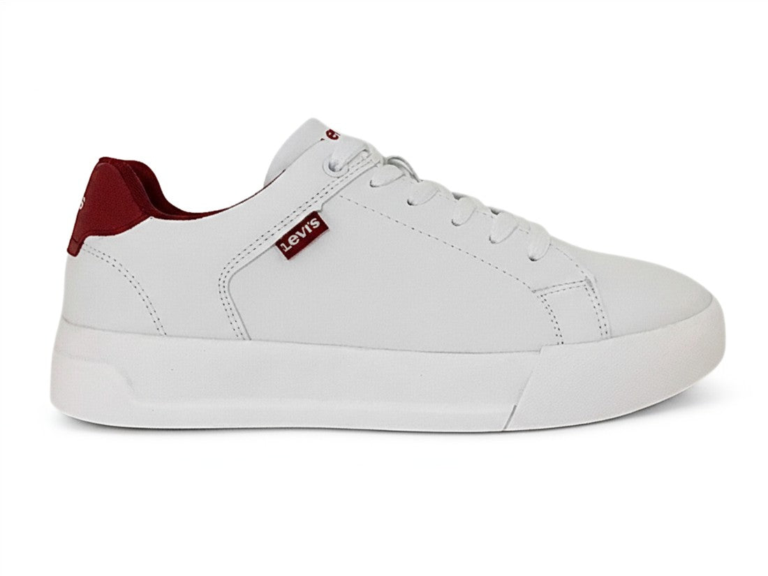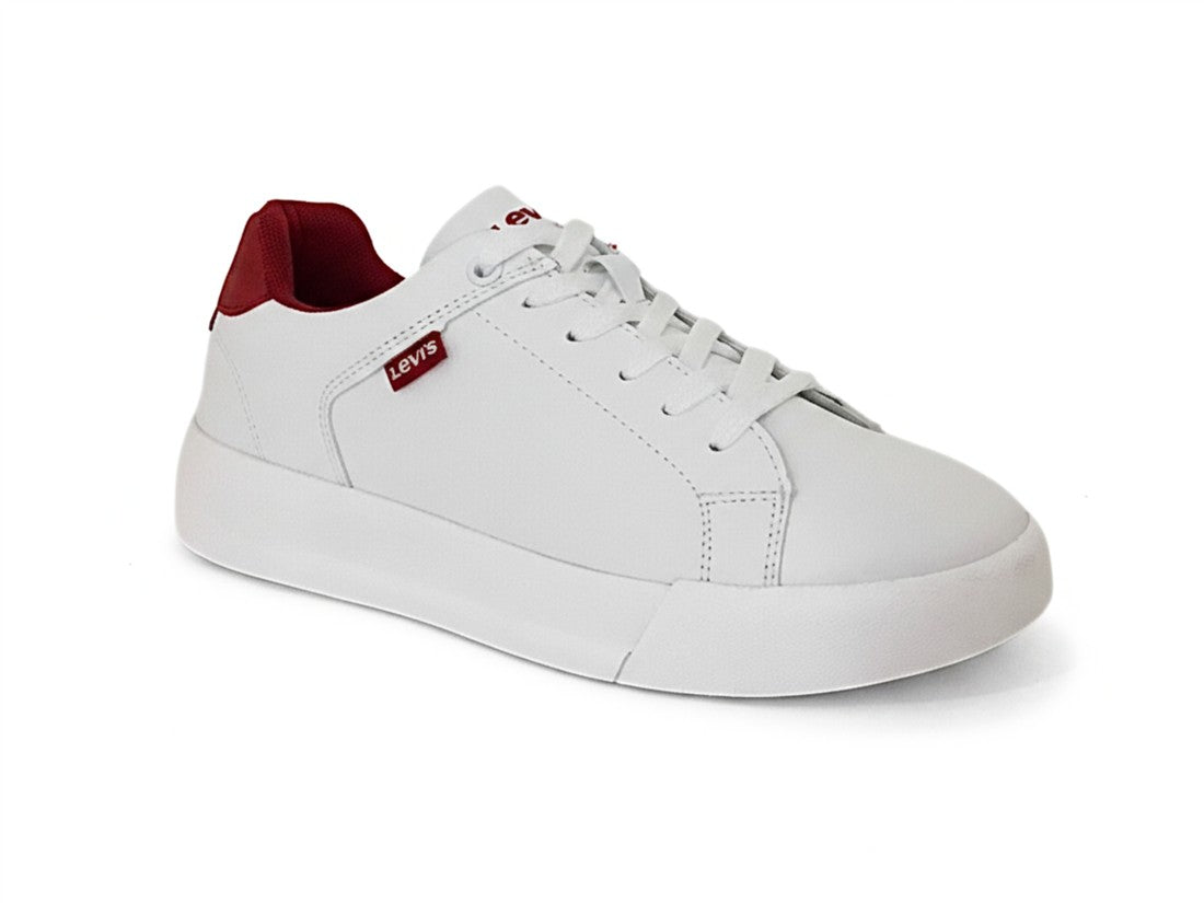Tenis casual Levis para hombre con ajuste de agujetas y detalles rojos llamativos.
