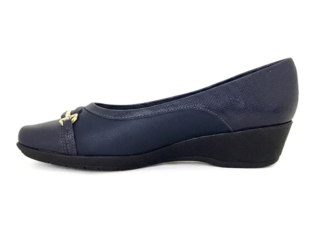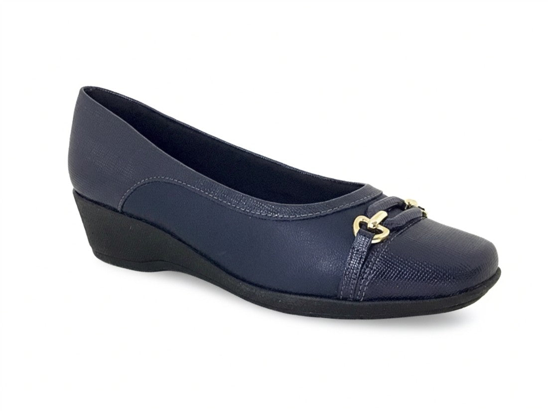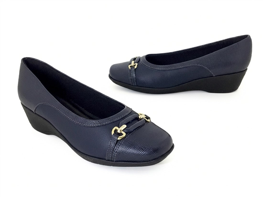 Zapato casual de cuña para mujer, con herraje decorativo frontal cómodo y elegante.